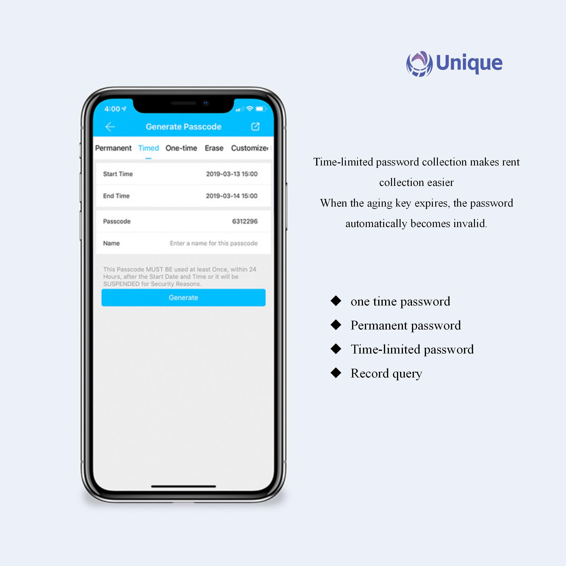 Unlock method:Independent unlocking card with password Unlock with password
